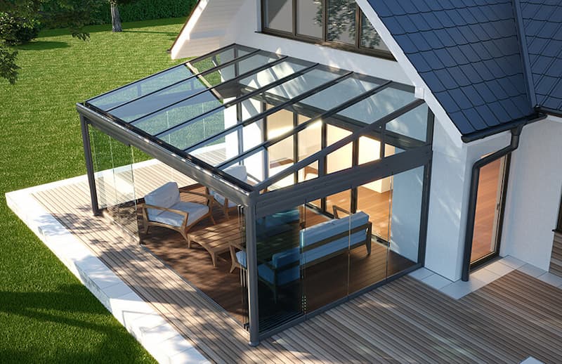 - Häuser mit Wintergärten, Glasvordächern oder ähnlichen Konstruktionen